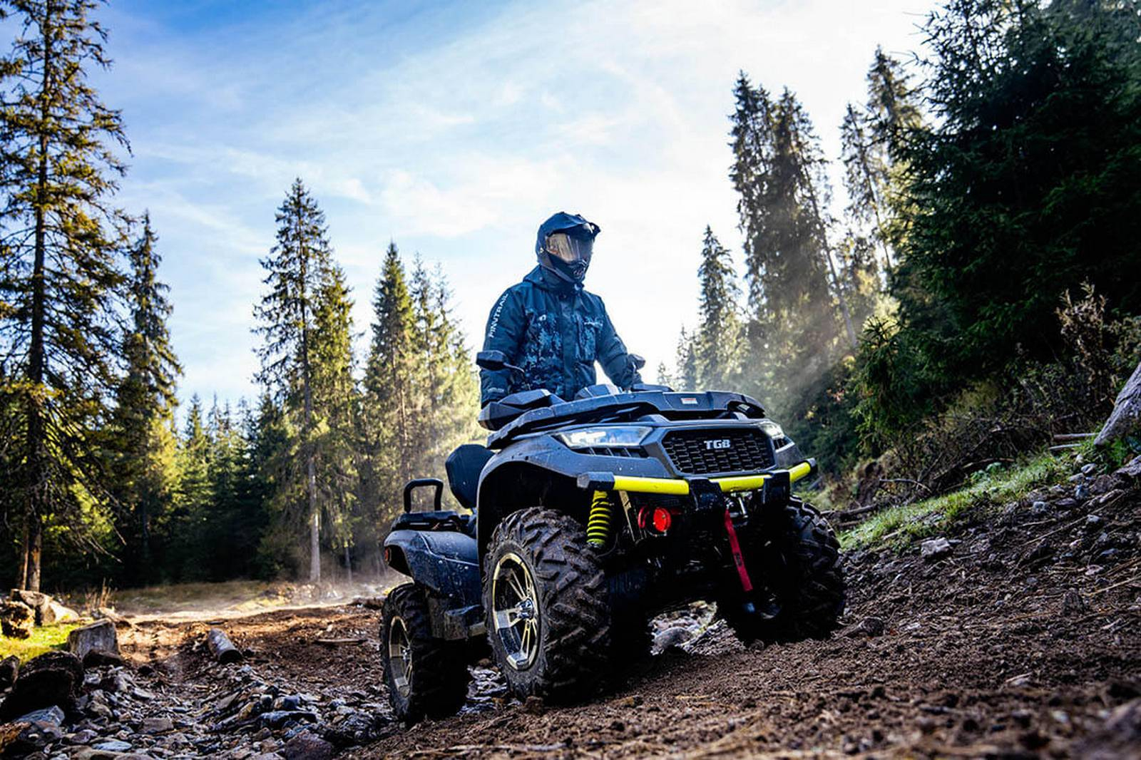 Мощный двухцилиндровый двигатель V-Twin, современные светодиодные фары, регулируемые амортизаторы, удлиненная колесная база, трехдиапазонный электронный усилитель руля и точно рассчитанная геометрия независимой подвески делают внедорожные возможности этого квадроцикла совершенно выдающимися.