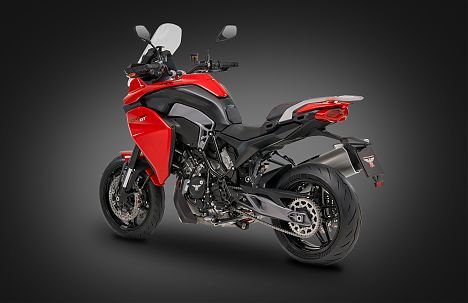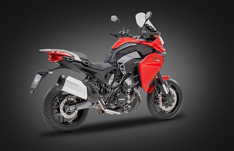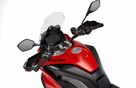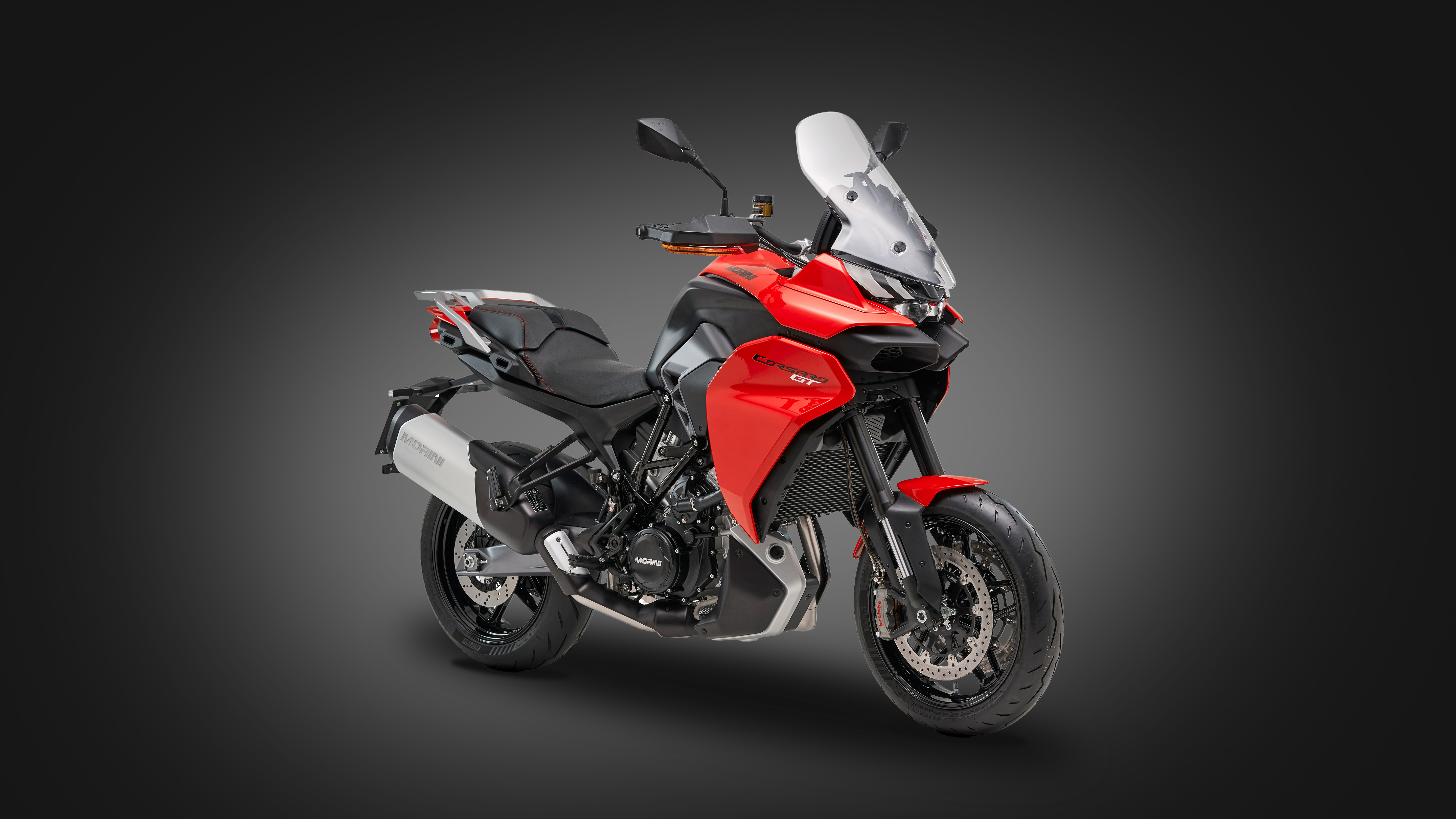 CORSARO GT — туристический кроссовер, который переосмысливает двухколесное путешествие. Оснащенный 750-кубовым V-образным двухцилиндровым двигателем с углом поворота 90°, он обеспечивает выдающиеся характеристики, гарантируя плавную и отзывчивую езду как при движении по городским улицам, так и в поездках на дальние расстояния.